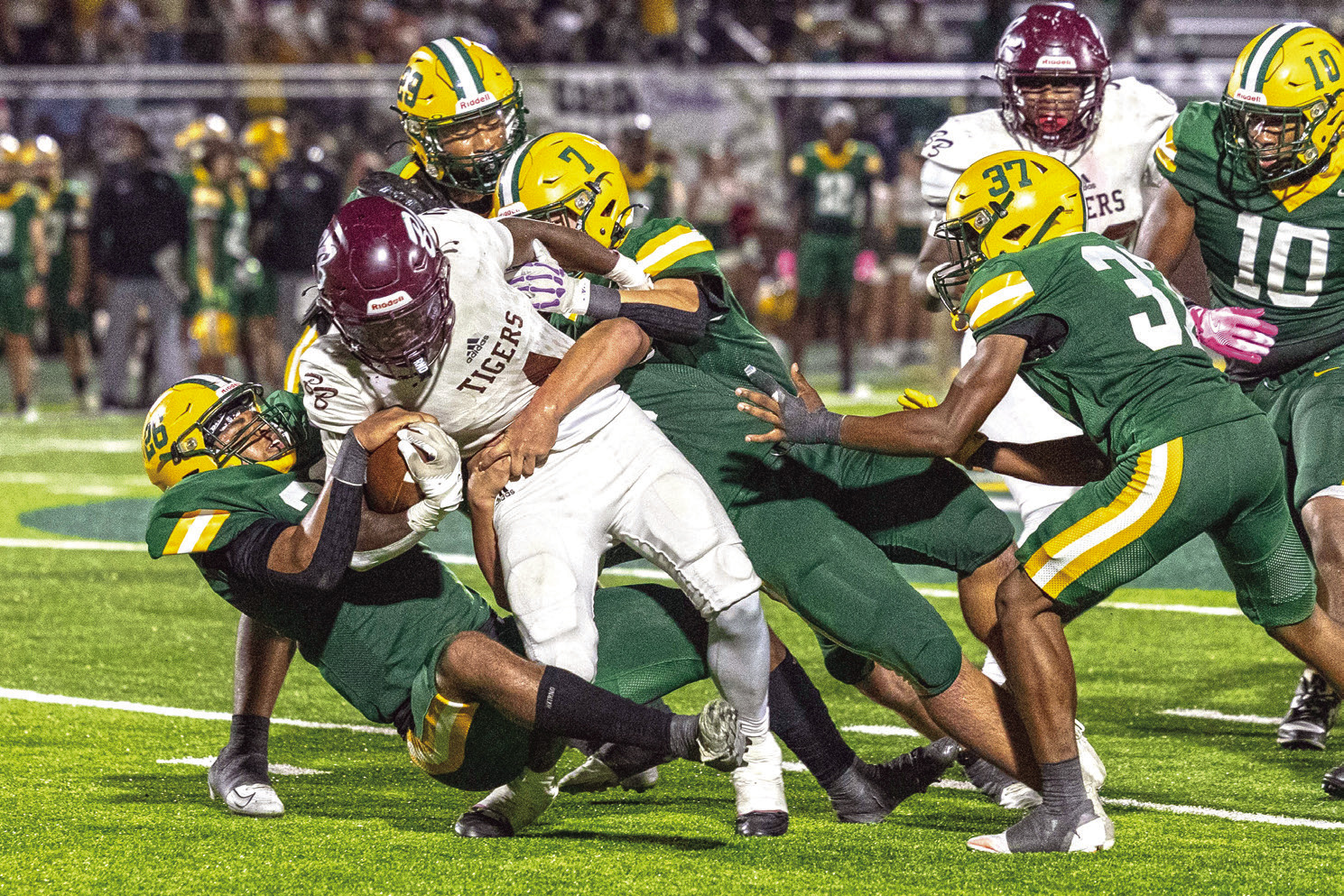 The Bulldogs did just that on Friday in their annual “Civil War” with the Breaux Bridge Tigers, scoring three firstquarter touchdowns on only six plays on their first three possessions on the way to a recordsetting 59-0 win at the Dawg Pound.