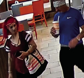 On February 12, at approximately 3:00 p.m., the victim left her purse on a chair at a local fast-food restaurant in the 1800 block of Rees Street. A female and a male subject, as seen in the attached photos, were seated at a nearby table when the victim left the restaurant. Shortly after the victim left, the female and male subjects are seen moving to the table where the victim left her purse. A short time later, the female subject is seen placing the victim’s purse inside her purse and exiting the restaurant.