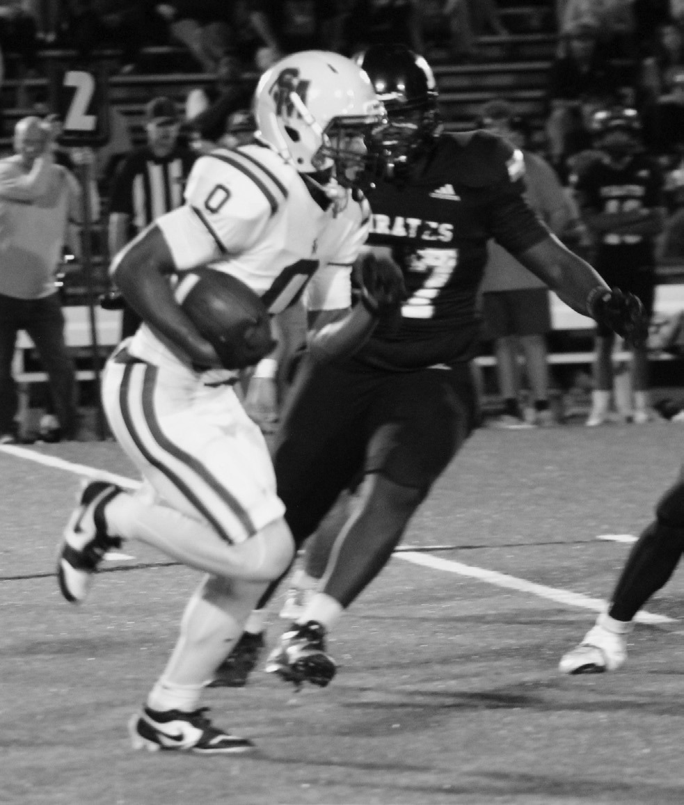 Six plays later, running back Mathiew Breaux broke loose for a 41-yard touchdown run that gave the Pirates a 14-7 lead, following Gannon Smith’s pointafter kick. The Pirates tacked on another touchdown on their next drive, marching 65 yards in seven plays. Hargrave scored on a three-yard carry two plays into the fourth quarter for a 21-7 lead.