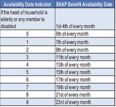 SNAP benefits are issued on a rolling basis each month based on the last digit of the head of household’s Social Security number.