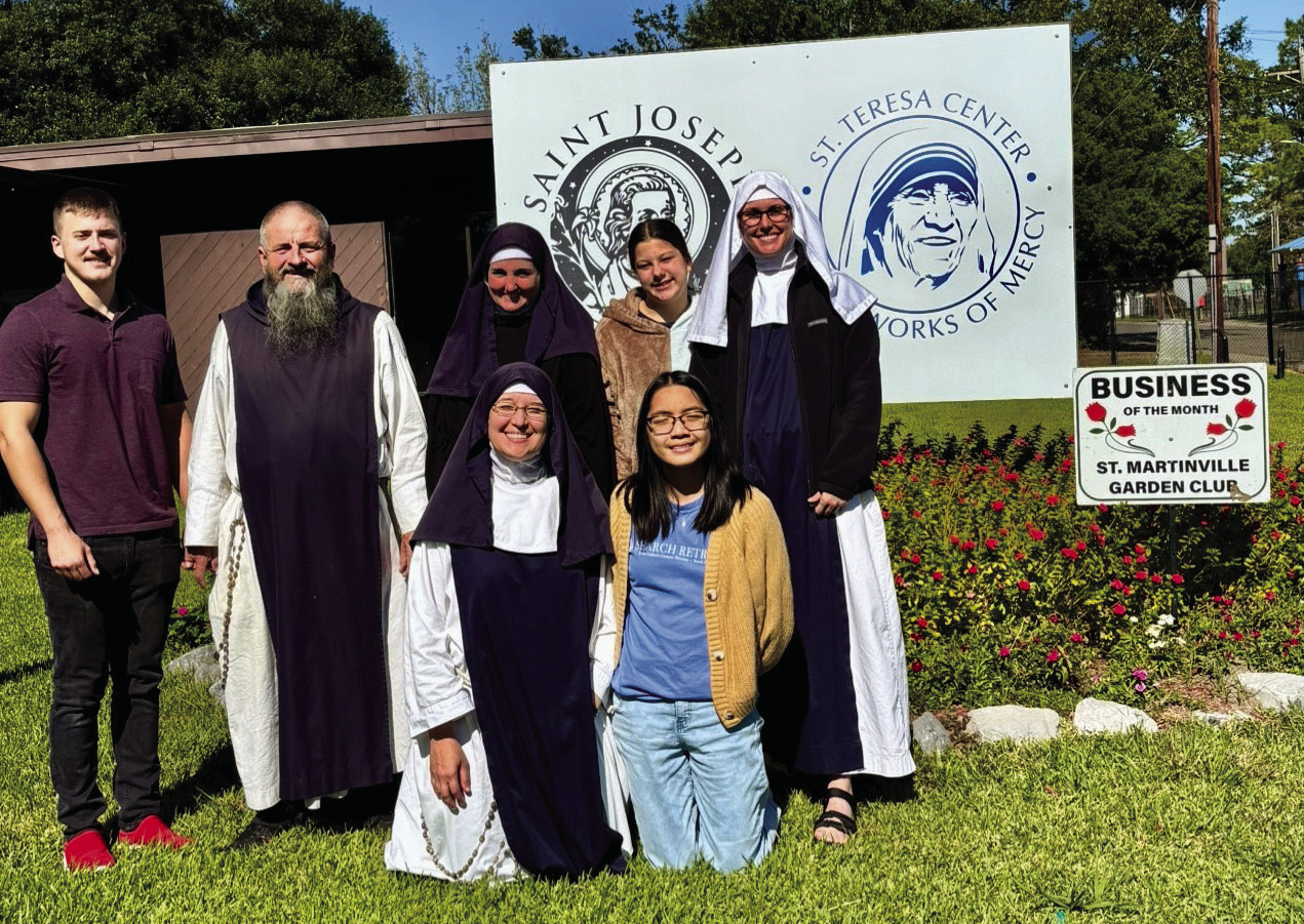 Business of the month – The St. Martinville Garden Club has selected the St. Joseph/St. Theresa Center located at 600 S. Martin Luther King Drive, as the recipient of its November Business Beautification Award. The property features vinca blooming in a variety of colors. Pictured are Father Michael Champagne, CJC; Miguel Zeringue, Sr. Marie-Thérese, CJC; Sr. Anne-Marie, CJC; Sr. Magdalene, Isabella and Christina. The Club is affiliated with District III of the Louisiana Garden Club Federation, Inc., the Deep South Garden Clubs, Inc., and the National Garden Clubs, Inc. (Submitted)Garden Club Meet – Debbie Guidry, center, served as guest speaker at the November meeting of the St. Martinville Garden Club, held at the St. Martinville Library. During her presentation, she demonstrated how to make rose petal bracelets for club members Charmaine Savasten, left, and Mary Desormeaux. Hostesses for the meeting were Tilly Duplechien and Mary Desormeaux. A former club member, Debbie enjoys sewing and crafting creative handmade items. (Submitted)Katie Rees and Jonno Frischberg will appear in concert this Sunday, Nov. 23 at the Duchamp Opera House in St. Martinville. Admission is free. (Philip Gould)