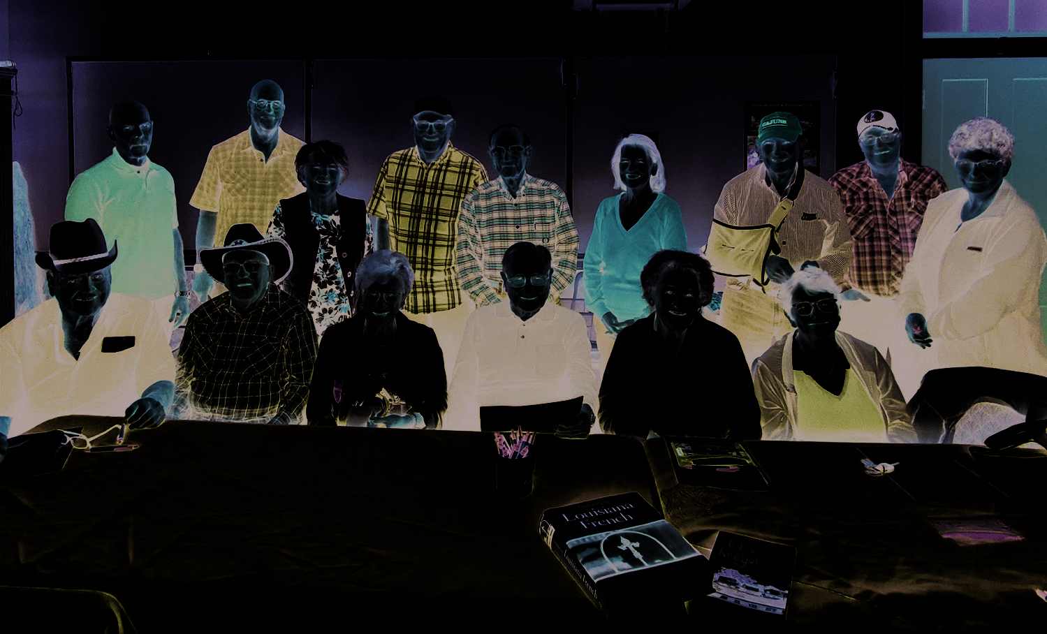 The St. Martinville French Table met on October 29 to share scary words and stories for Halloween. Seated, from left to right, Richard Theriot, Clayton Melançon, Margaret Vincent, John Thibodeaux, Sue Thomas and Margaret Guidry DeBlanc. Standing, Glenn Thomas, Gunther Meixner, Debbie Wilkerson, Gayle Guidry, A. J. Guidry, Henrietta Hilbun, Sidney Bellard, Donald Breaux and Bonnie Marceaux. The French table meets every Wednesday from 10 a.m. to 11 a.m. at Longfellow-Evangeline State Historic site. (Submitted)