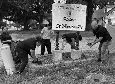 St. Martinville Chamber of Commerce, in conjunction with St. Martin Parish ROTC students and the St. Martinville Jr. Chamber, enhanced two entrances into St. Martinville last Saturday. The ROTC students removed and replanted rose bushes and cleaned another entrance by pruning plants and adding mulch. (Submitted)