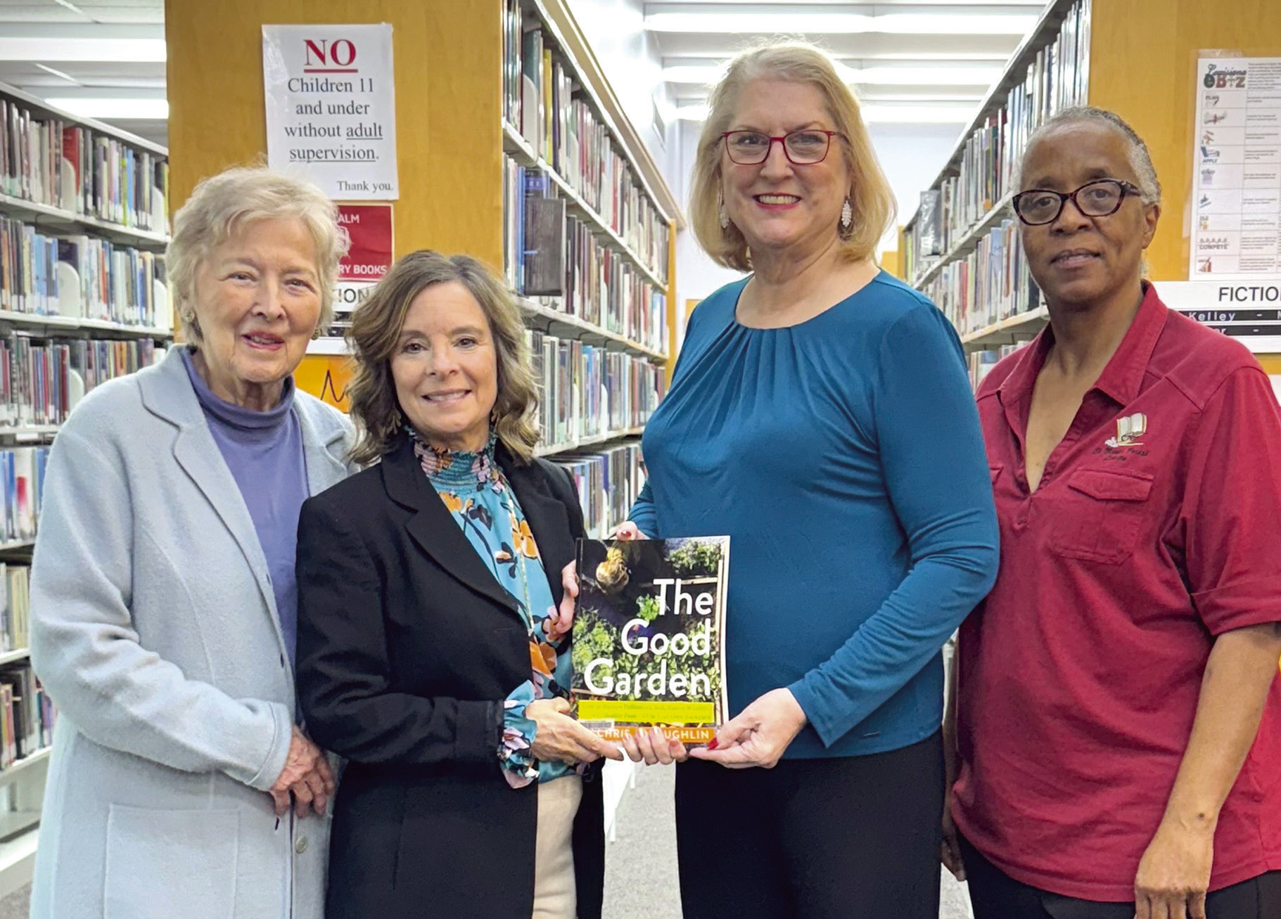 Book donation - St. Martinville Garden Club President Nessie Laviolette, second from left, presented a copy of The Good Gardener to the St. Martinville Branch Library in memory of the late Mrs. Marianne Bienvenu, a former member of the club. Pictured from left are Betty Bulliard, garden club member; Laviolette; Marie Wright, daughter of Mrs. Bienvenu; and Kathleen Landry, branch manager of the St. Martinville Library. (Submitted)