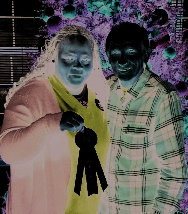 Family Category - Third place (tie) - Reginald J. Nero and Family. Accepting the award from George Choplin is Margaret Nero.
